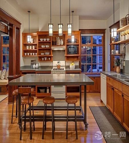 在功能性与设计需求方面,现代厨房体现出了一些客观需求。实现这些目标可以通过安装一个功能比较丰富的岛式厨房.它可以给你的装饰带来一丝新颖的感觉。空间利用率决定了岛式厨房的高度与尺寸,而且它要与其它厨房内的家具及设施远离开来,能够有足够空间来打开橱柜门或者可在烹饪区内显得不太拥挤。而如果在岛式厨房加上滚轮,那么就更加方便,今天广州装修网的小编就为大家带来32款带滚轮的岛式厨房设计。